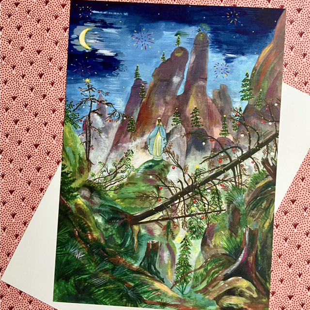 The cards are A5 size (14,8 cm x 21 cm) and printed on Biotop 300 grams paper.