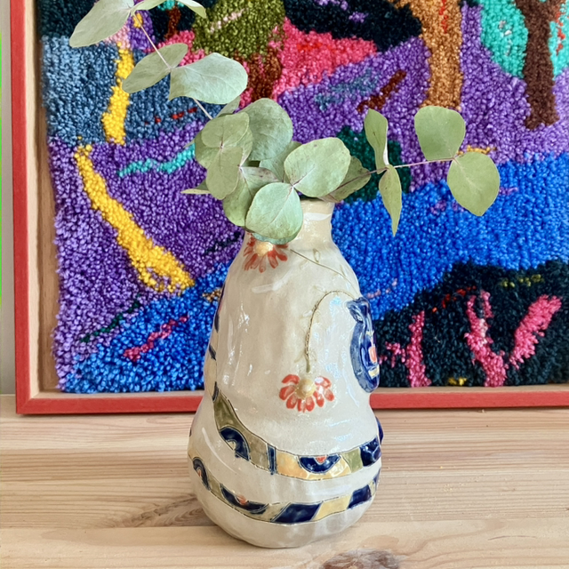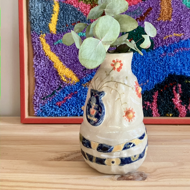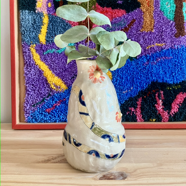 Vase with a textured snake and a vase with flowers